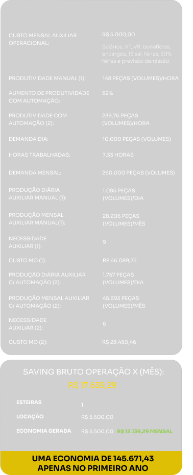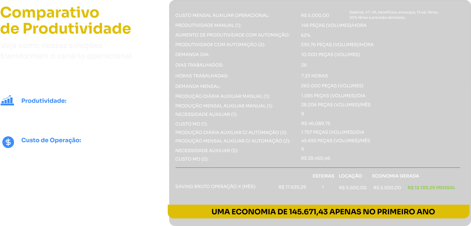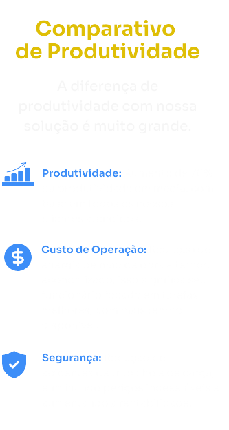 Com o uso do nosso equipamento a redução dos custos de mão de obra ocorre desde o primeiro dia de uso através do aumento de produtividade.