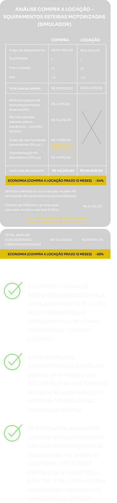 Nosso modelo de negócio é sem investimento*. O uso do equipamento aumenta a produtividade gerando um saving que subsidia a locação. *formato de locação